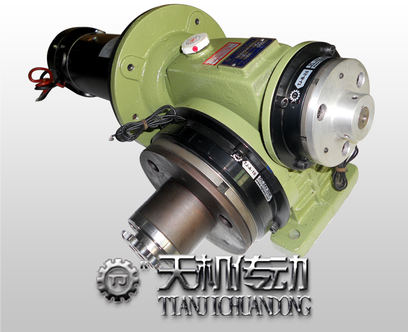 天機傳動該標準型蝸輪減速機電磁離合剎車組合,由鑄鐵蝸輪減速機、TJ-B2型單片電磁制動器(下稱制動器)、TJ-A2型內(nèi)軸承式電磁離合器(下稱離合器)組成。離合器裝置于減速機的輸出端,制動器裝置于減速機的輸入端右側(cè),輸入端左側(cè)與電機連接。